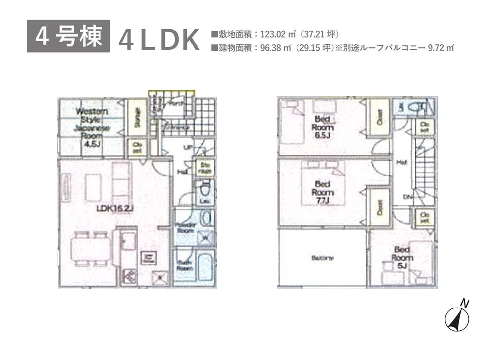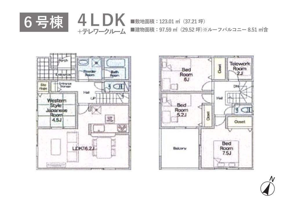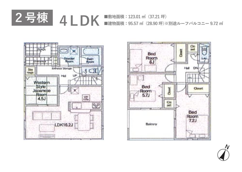 | 建物面積 | 95.57㎡~97.59㎡ | 土地面積 | 121.01㎡~124.64㎡ | ||
