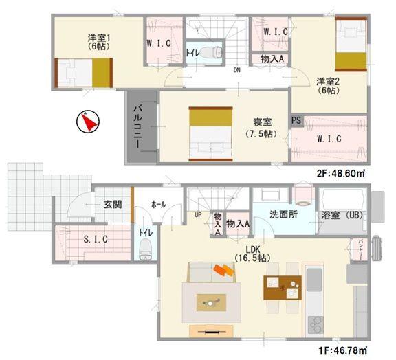 | 建物面積 | 95.38㎡(28.85坪)(実測) | 土地面積 | 99.48㎡(30.09坪)(実測) | ||