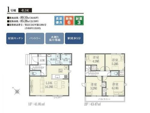 | 建物面積 | 85.28㎡ | 土地面積 | 89.10㎡ | ||