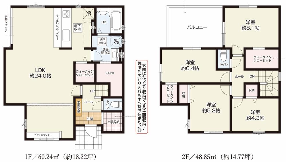 ※土地(建築条件なし)で「建物プラン例」が表記してある時、そのプラン例は特定の建築請負会社によるもので、当該建築請負会社以外で建てた場合、同様のものが同価格で建てられるとは限りません。また建築請負会社を特定するものではありません。