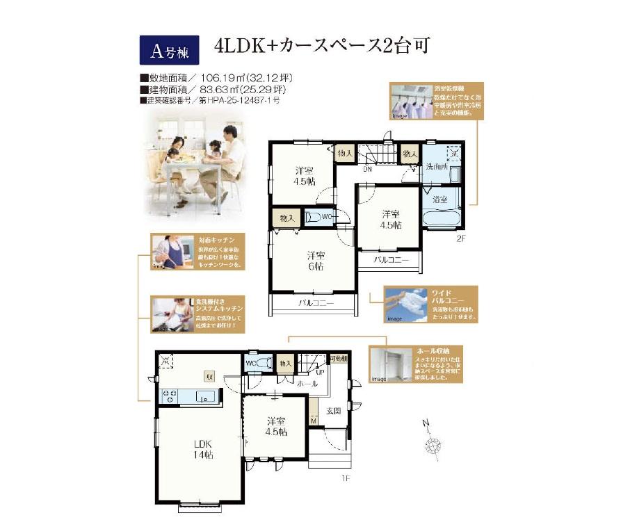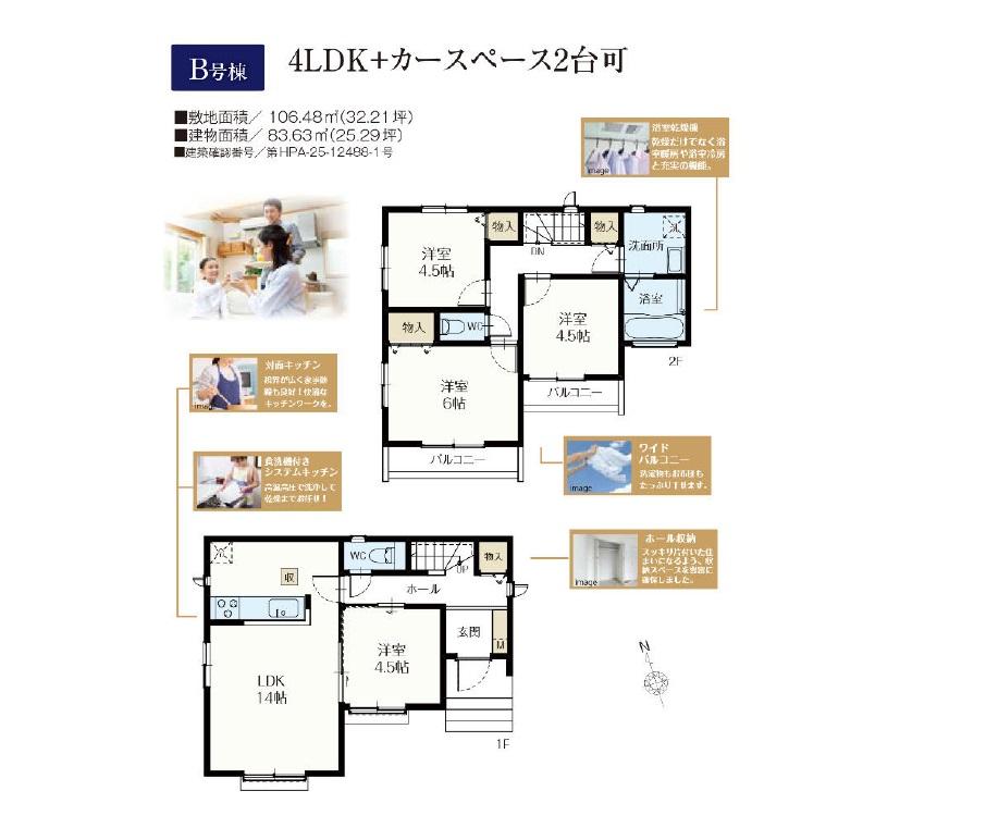 | 建物面積 | 83.63㎡・86.63㎡ | 土地面積 | 106.19㎡・106.48㎡ | ||