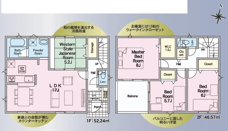 | 建物面積 | 93.15㎡~101.64㎡ | 土地面積 | 130.82㎡~136.01㎡ | ||