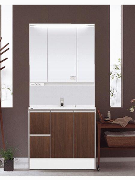 見た目の美しさだけではなく、機能性も追求した使い勝手の良い鏡裏収納付3面鏡型の独立洗面化粧台。広めで使いやすい、お手入れが楽なデザインのカウンターに収納豊富なキャビネットとでいつも清潔に保てます。