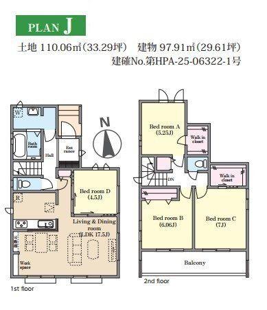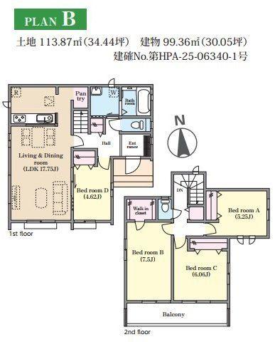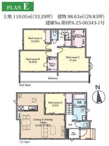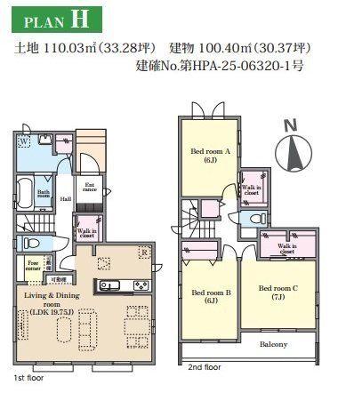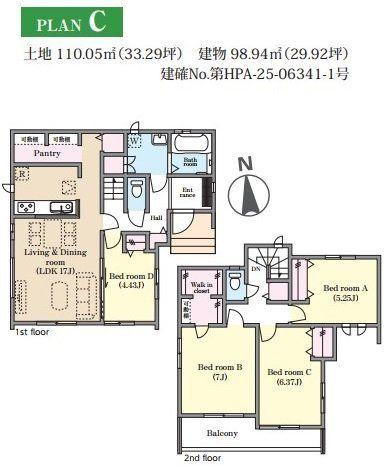 | 建物面積 | 97.91㎡~103.92㎡(29.61坪~31.43坪) | 土地面積 | 110.03㎡~114.23㎡(33.28坪~34.55坪)(登記) | ||
