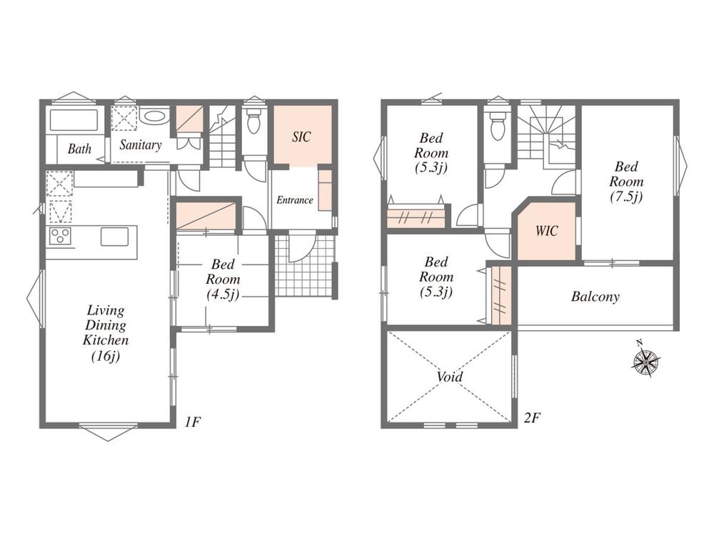 設備 | 駐車2台可 / LDK20畳以上 / 省エネ給湯器 / システムキッチン / 浴室乾燥機 / 全居室収納 / 駅まで平坦 / 閑静な住宅地 / 対面式キッチン / 3面採光 / トイレ2ヶ所 / 2階建 / 複層ガラス / 床下収納 / 浴室に窓 / 吹抜け / 南西向き / パントリー(食器・食品の収納庫) / ウォークインクローゼット / 天井高2.5m以上 / リビング階段 / 都市ガス / シューズインクローク / 全室2面採光 / 平坦地 / 床暖房 / 食器洗乾燥機 | ||||