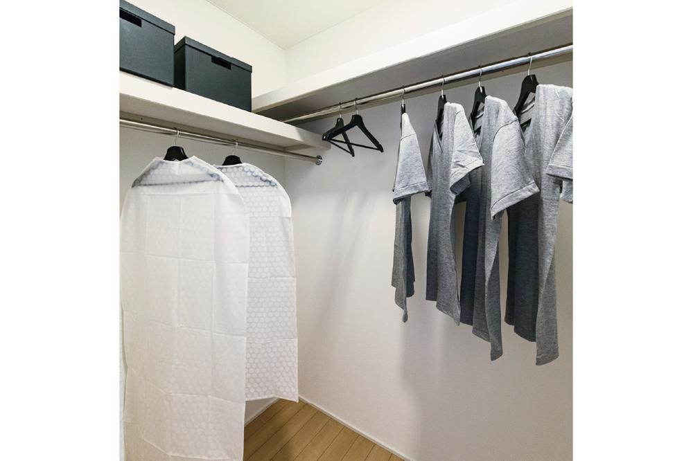 【ウォークインクロゼット】コートやダウンジャケットなど季節の洋服やゴルフバック、家電など大きなアイテムをしまっておける大容量の収納スペースです。※号棟により採用状況が異なります。