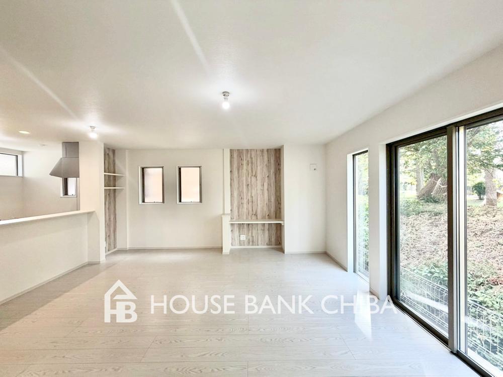 明るく柔らかな光と、優しい風が心地よい快適なリビングです。家族が集う、この場所での毎日が、これからの宝物へとなっていくことでしょう。柔らかな色見の室内は、落ち着きと安らぎを感じることのできる空間です。