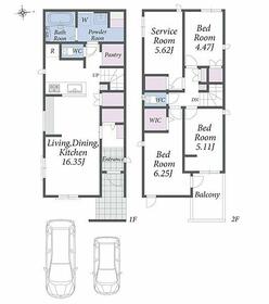 土地面積土地:104.40m2〜125.62m2 建物:95.23m2〜102.67m2