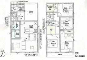 土地面積土地:102.16m2(30.90坪) 建物:91.52m2・104.48m2(27.68坪・31.60坪)