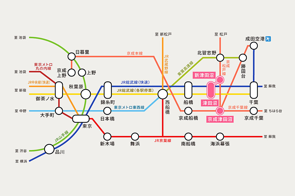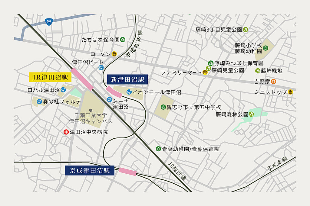 JR総武線「津田沼」駅 徒歩18分 京成本線「京成津田沼」駅 徒歩18分 京成松戸線「新津田沼」駅 徒歩15分 | ||||