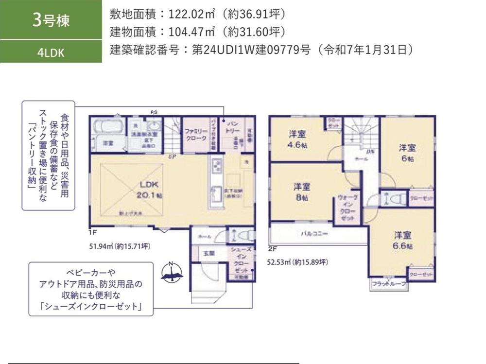 詳細を見る間取り3LDK・4LDK建物面積104.47m²~105.1m²土地面積土地:122.02m2〜122.75m2<1号棟 私道負担面積231m2 3号棟 私道負担面積231m2 > 建物:104.47m2〜105.1m2築年月-
