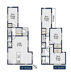 詳細を見る間取り4LDK建物面積86.11m²~87.97m²土地面積土地:91.44m2・91.58m2(27.66坪・27.70坪) 建物:86.11m2・87.97m2(26.04坪・26.61坪)築年月-