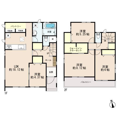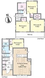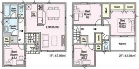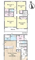 土地面積土地:123.93m2〜125.54m2 建物:90.46m2〜104.95m2