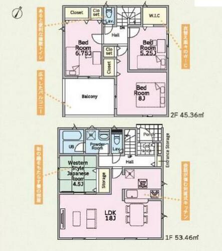 | 設備 | 追焚機能・都市ガス・浴室乾燥機・Wクロゼット・シャンプードレッサー・ウォシュレット・システムキッチン・カウンターキッチン・モニタ付インターホン・トイレ2ヶ所・床下収納・浄水器・ディンプルキー・電気・上水道・下水道 | ||||