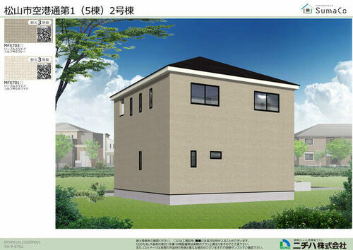 | 備考 | 2号棟 松山市空港通 第1【法令】宅地造成工事規制区域【その他制限事項】法第22条区域 特別用途地区(大規模集客施設制限区域) 建物面積に別途ルーフバルコニー約6.48平米およびポーチの一部約1.62平米有り 駐車場2台(車種による)・私道負担:あり306平米(共有持分:1/5)・■さくら小学校■西中学校■松山生協西雄郡店(徒歩11分) | ||||