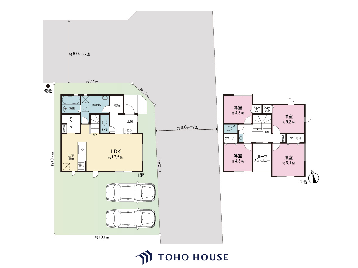 土地面積土地:132.88m2・135.88m2 建物:97.5m2・97.71m2