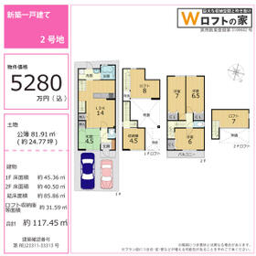 土地面積土地:131.75m2 私道負担あり 0.6m2の負担持ち分(2号地) 建物:94.40m2(2号地)