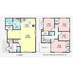 土地面積土地:127.98m2〜137.44m2 建物:100.19m2〜101.85m2