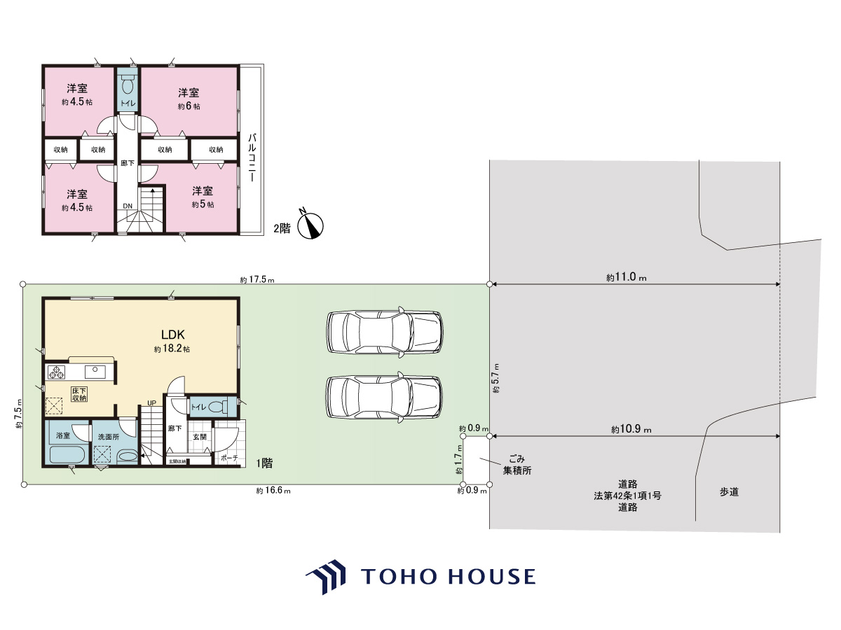 土地面積土地:64m2<私道負担面積10m2 私道負担割合1/1> 建物:110.16m2