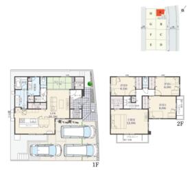 土地面積土地:165.02m2(49.91坪)〜177.69m2(53.75坪) 建物:135.54m2(41.00坪)〜135.57m2(41.00坪)
