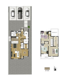 土地面積土地:148.43m2・153.46m2(44.89坪・46.42坪) 建物:61.27m2・104.75m2(18.53坪・31.68坪)
