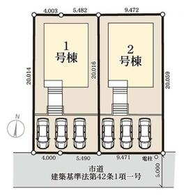 土地面積土地:202.53m2〜216.92m2 建物:106.22m2〜112.00m2