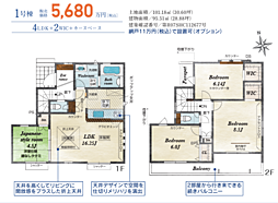 土地面積土地:101.87m2〜118.35m2 建物:101.02m2〜104.74m2