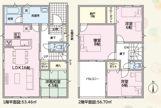 ※土地(建築条件なし)で「建物プラン例」が表記してある時、そのプラン例は特定の建築請負会社によるもので、当該建築請負会社以外で建てた場合、同様のものが同価格で建てられるとは限りません。また建築請負会社を特定するものではありません。
