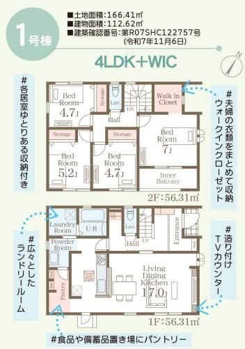 | 建物面積 | 112.62㎡(34.06坪)(登記) | 土地面積 | 166.41㎡(50.33坪)(登記) | ||
