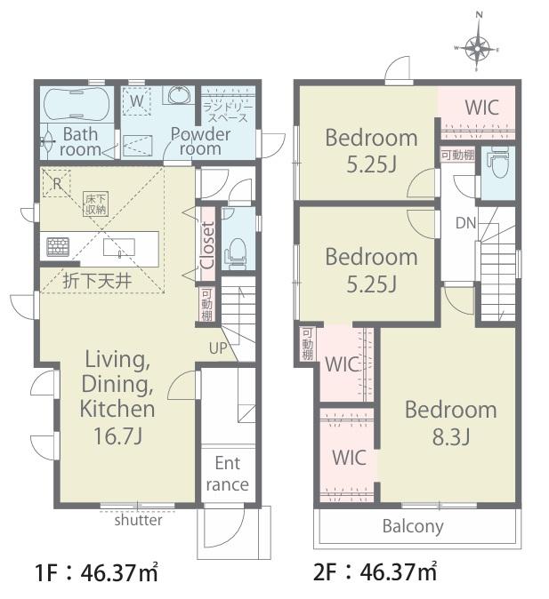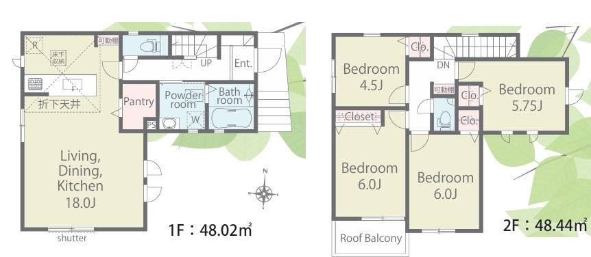 | 建物面積 | 92.74㎡・96.46㎡ | 土地面積 | 120.9㎡・129.99㎡ | ||