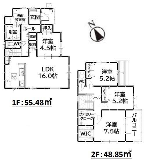 | 建物面積 | 104.33㎡・104.52㎡ | 土地面積 | 132.77㎡・140.72㎡ | ||