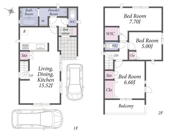 | 建物面積 | 85.91㎡・87.87㎡ | 土地面積 | 162.74㎡・166.32㎡ | ||