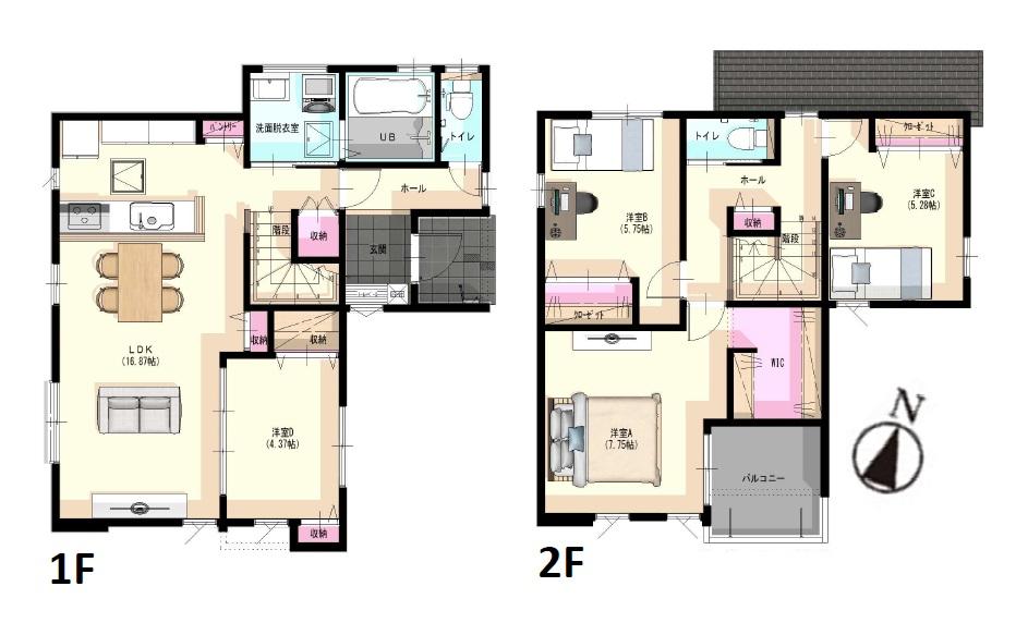 ※土地(建築条件なし)で「建物プラン例」が表記してある時、そのプラン例は特定の建築請負会社によるもので、当該建築請負会社以外で建てた場合、同様のものが同価格で建てられるとは限りません。また建築請負会社を特定するものではありません。