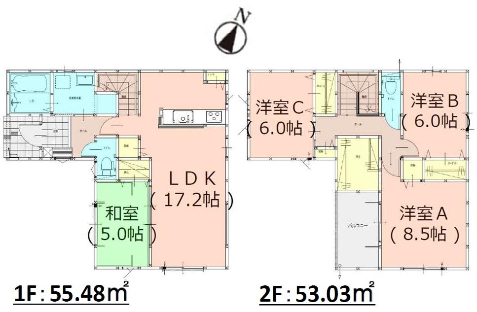 ※土地(建築条件なし)で「建物プラン例」が表記してある時、そのプラン例は特定の建築請負会社によるもので、当該建築請負会社以外で建てた場合、同様のものが同価格で建てられるとは限りません。また建築請負会社を特定するものではありません。