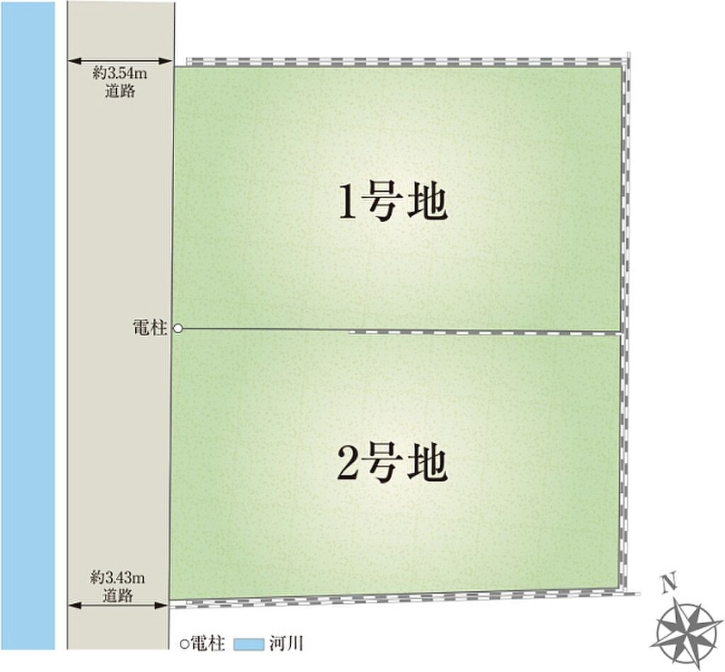 | 建物面積 | - | 土地面積 | 135.73m2(1号地)、135.74m2(2号地) 全て私道負担なし | ||