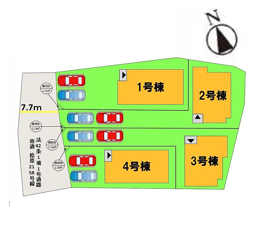 | 道路付け | 2号棟:西7.7m /4号棟:西7.7m /3号棟:西7.7m | 機構融資 | - | ||