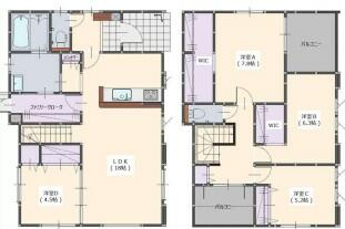 | 設備 | 収納スペース・フローリング・Wクロゼット・トイレ2ヶ所・電気・上水道・下水道 | ||||