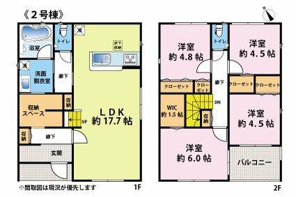 | 備考 | 私道負担:なし・動線を意識したデザインのシステムキッチン付きで作業能率が上がります。お掃除がしやすいIH調理器です。新しい土地の新築戸建て物件で、心機一転、新生活を始めませんか。 | ||||