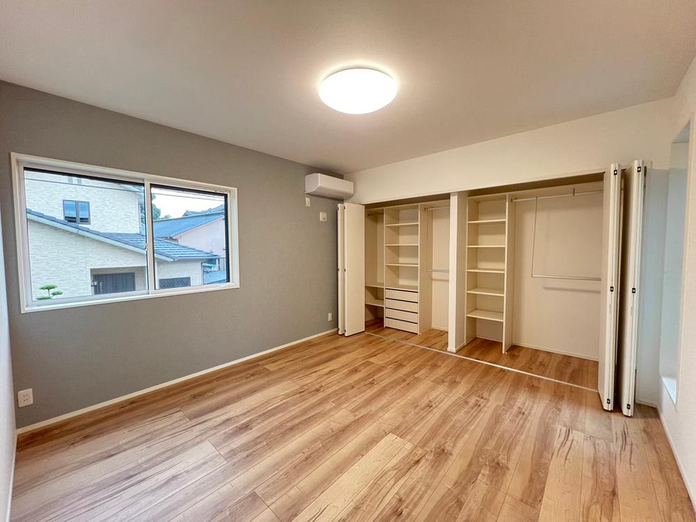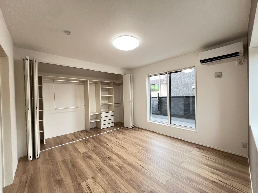 【5号地/主寝室】自由度の高いシステム収納を採用!天井まで収納スペースとすることで、無駄なスペースまで有効活用し収納力UP♪片付けが苦手な方も安心してお使いいただけます!※2025年10月撮影