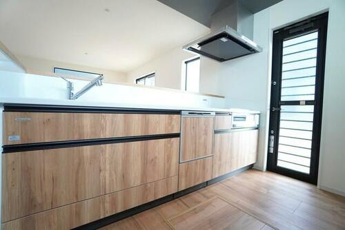 | 設備 | 収納スペース・追焚機能・フローリング・浴室乾燥機・Wクロゼット・照明器具・シャンプードレッサー・ウォシュレット・システムキッチン・カウンターキッチン・モニタ付インターホン・クロゼット・トイレ2ヶ所・床下収納・IHクッキングヒータ・浄水器・食器洗浄乾燥機・複層ガラス・ディンプルキー・上水道・下水道・側溝 | ||||