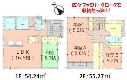 | 設備 | 駐車2台可 / 即引渡可 / 2沿線以上利用可 / LDK18畳以上 / スーパー 徒歩10分以内 / システムキッチン / 浴室乾燥機 / 全居室収納 / 閑静な住宅地 / 和室 / 対面式キッチン / トイレ2ヶ所 / 2階建 / 南面バルコニー / オートバス / 温水洗浄便座 / 床下収納 / TVモニタ付インターホン / 南西向き / パントリー(食器・食品の収納庫) / ウォークインクローゼット / 小学校 徒歩10分以内 / 平坦地 / 食器洗乾燥機 | ||||
