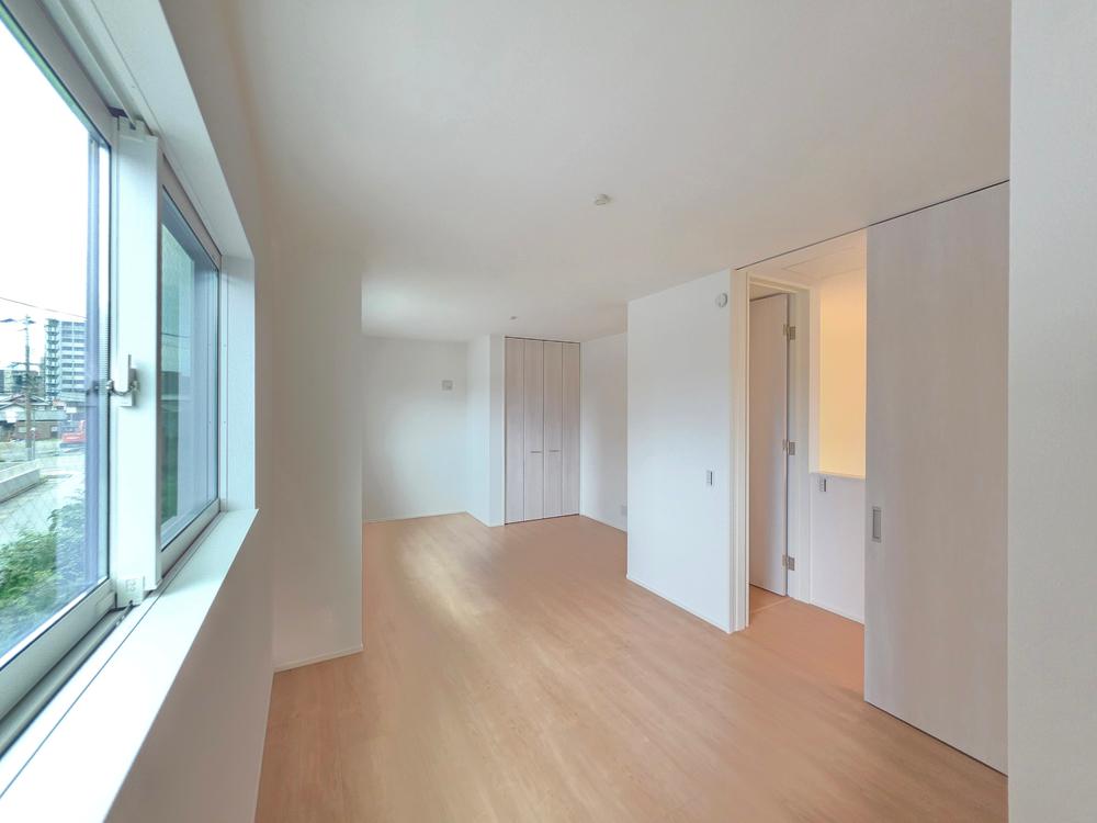【子ども部屋】そのまま広々居室としても、壁を設け2部屋に分けることも可能です。成長やライフスタイルに合わせて変化できる、2ドア1ルーム設計。各室に収納を確保し、空間をすっきり保ちます♪