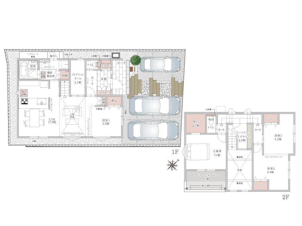 ※土地(建築条件なし)で「建物プラン例」が表記してある時、そのプラン例は特定の建築請負会社によるもので、当該建築請負会社以外で建てた場合、同様のものが同価格で建てられるとは限りません。また建築請負会社を特定するものではありません。