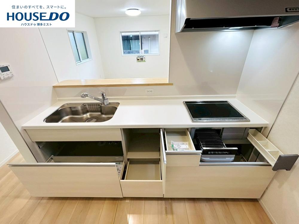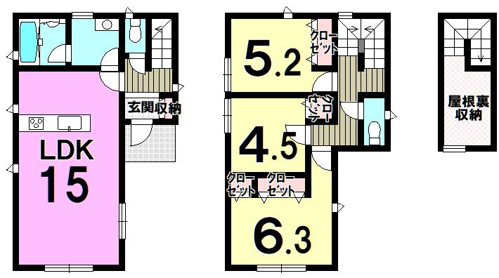 | 設備 | フラット35Sに対応 / 駐車2台可 / 即引渡可 / システムキッチン / 浴室乾燥機 / 陽当り良好 / 全居室収納 / LDK15畳以上 / シャワー付洗面化粧台 / 対面式キッチン / トイレ2ヶ所 / 2階建 / オートバス / 温水洗浄便座 / 床下収納 / 浴室に窓 / TVモニタ付インターホン / 通風良好 / 全居室フローリング / IHクッキングヒーター / リビング階段 / 小学校 徒歩10分以内 / 屋根裏収納 / オール電化 / 浄水器 | ||||