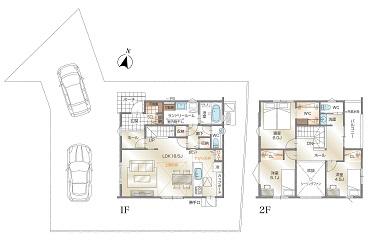 ※土地(建築条件なし)で「建物プラン例」が表記してある時、そのプラン例は特定の建築請負会社によるもので、当該建築請負会社以外で建てた場合、同様のものが同価格で建てられるとは限りません。また建築請負会社を特定するものではありません。