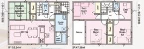※土地(建築条件なし)で「建物プラン例」が表記してある時、そのプラン例は特定の建築請負会社によるもので、当該建築請負会社以外で建てた場合、同様のものが同価格で建てられるとは限りません。また建築請負会社を特定するものではありません。