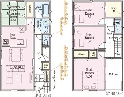 | 建物面積 | 95.58㎡~98.82㎡(28.91坪~29.89坪) | 土地面積 | 175.18㎡~179.31㎡(52.99坪~54.24坪)(登記) | ||