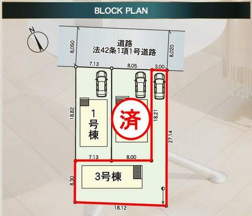 | 私道負担・道路 | - | 道路付け | 北 8.0m 公道 接面3.0m | ||
