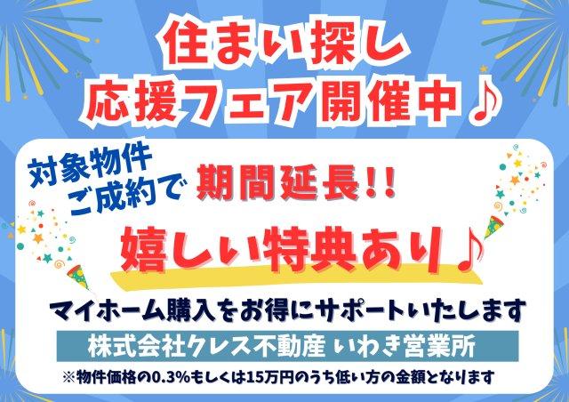 (株)クレス不動産いわき営業所 0120-826464(無料通話) 上記の電話番号にお問合せください。(携帯・PHS 可) 【物件番号】20007677 | ||||