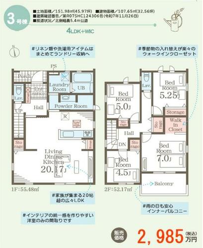 | 建物面積 | 107.65㎡ | 土地面積 | 151.98㎡ | ||